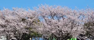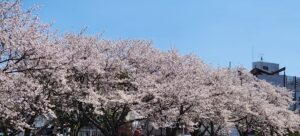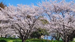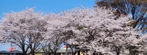 お疲れ様です、リアン駐車場からの満開の桜!